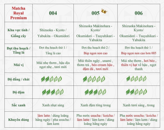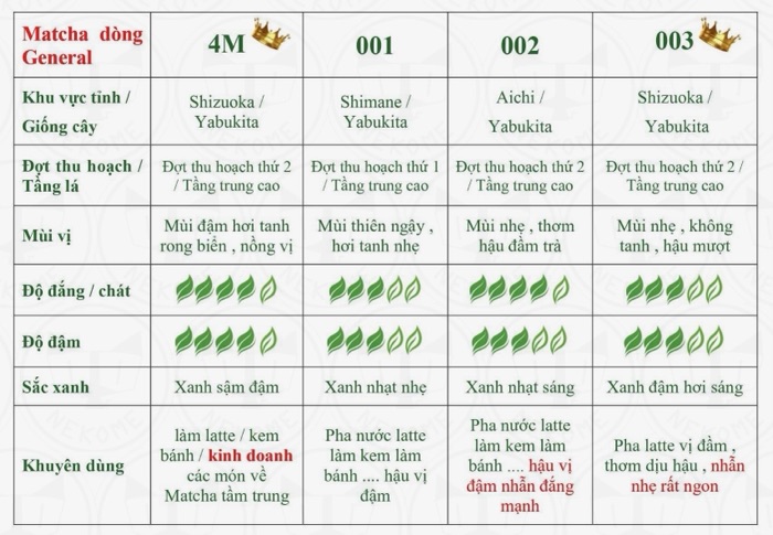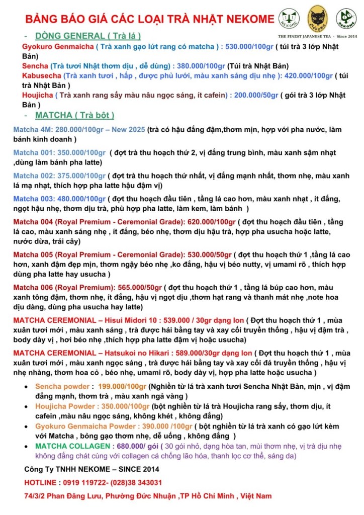 Các loại matcha nhà Nekome có vô cùng phong phú
